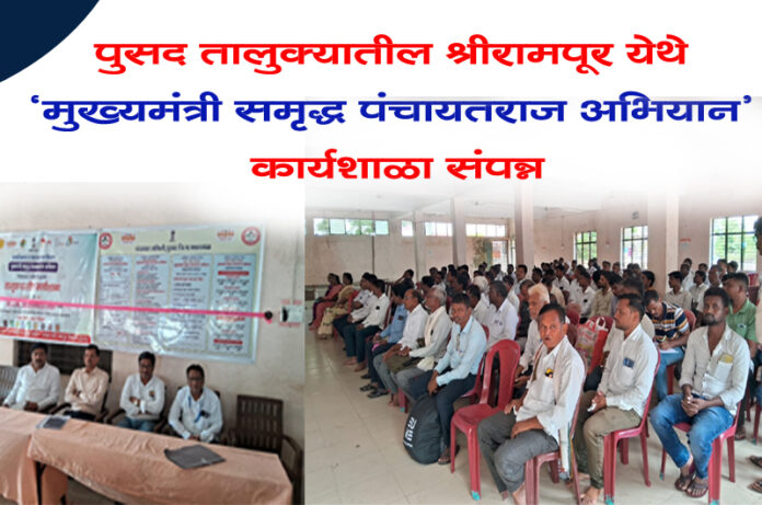 पुसद (प्रतिनिधी) : ग्रामविकास विभागामार्फत राबविण्यात येणाऱ्या मुख्यमंत्री समृद्ध पंचायतराज अभियान अंतर्गत पुसद तालुक्यातील श्रीरामपूर येथे एक भव्य कार्यशाळा आयोजित करण्यात आली होती. गावाच्या सर्वांगीण विकासासाठी पंचायतराज संस्थांना बळकट करण्याचा उद्देश डोळ्यासमोर ठेवून ही कार्यशाळा जगदंबा माता मंदिर सभागृहात पार पडली. या कार्यशाळेचे उद्घाटन पुसद पंचायत समितीचे चे गटविकास अधिकारी श्री. अमोलकुमार आंदेलवाड यांच्या हस्ते झाले. प्रमुख पाहुणे म्हणून श्रीरामपूर ग्रामपंचायतीचे सरपंच श्री. आशिष काळबांडे उपस्थित होते.
